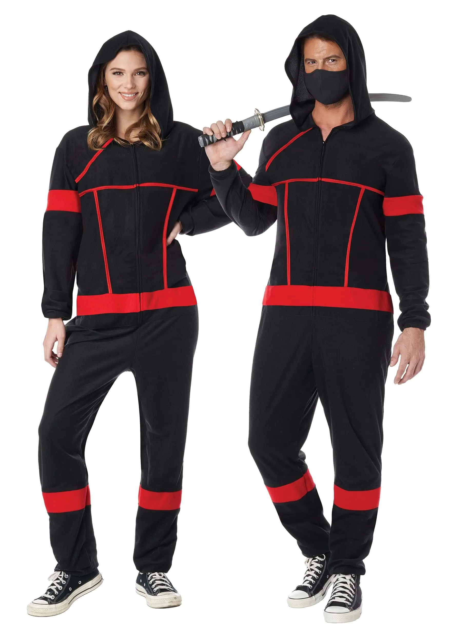 This Adult Unisex Onesie offers all the fashionable, chic tones of black that make everyone love them, while not sacrificing comfort in the least. The warm, sweater-like fabric of the onesie sits on your shoulders and head like the most comfortable blanket that you have ever used, while the fashionable black and red looks like a ninja’s garb. For bonus points, it is much easier to sneak around undetected while you are comfy too!