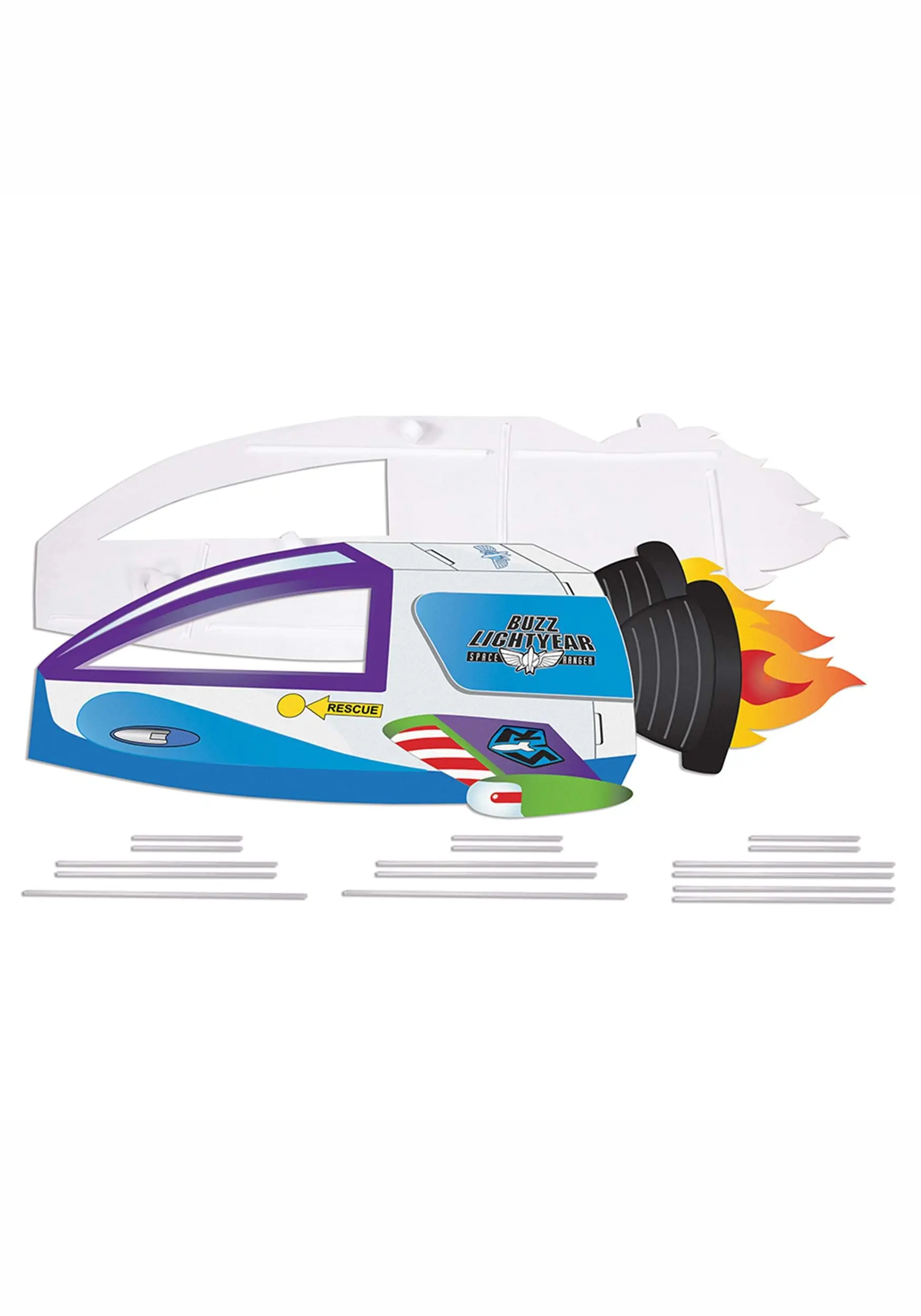 Explore beyond infinity with your officially licensed Buzz Lightyear Spaceship Wheelchair Cover! The stiff felt sides are shaped like Buzz’s rocket ship and full of fun details, including the flame shooting out the back of the rockets and a cutout window that lets passersby see the daring spaceman inside. The sides are supported by no less than 16 pieces of plastic piping and attach securely to your chair with self-stick fabric strips. Thanks to its ease of assembly, you’ll be exploring the galaxy (or the cul-de-sac) in a jiffy!