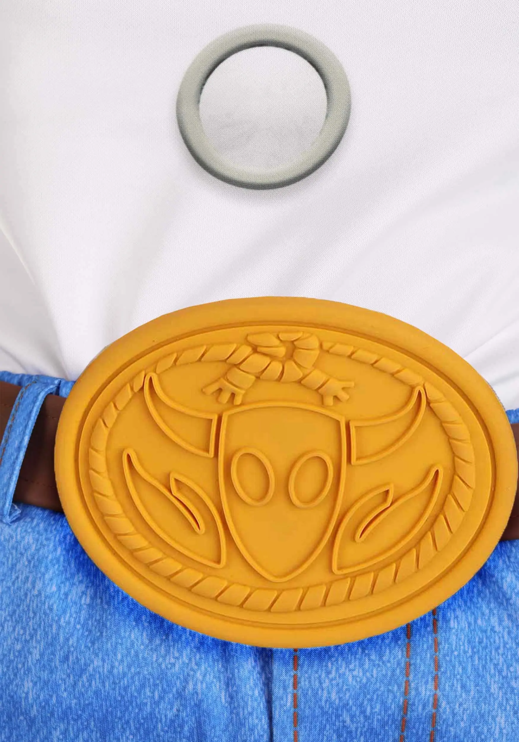 The ensemble begins with a simple shirt that is printed to look as detailed as Jessie’s own blouse. The pants have the appearance of denim and cowhide as well as felt chaps to give you a bit of extra authentic cowpoke style. The faux leather belt cinches your look together and you’ll be in full Jessie mode when you wear her signature hat. Exciting right? Just remember to breathe!