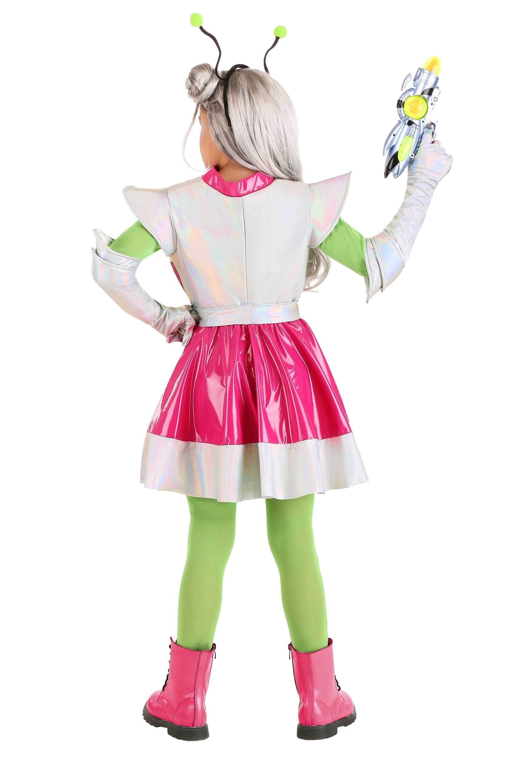 And that’s because we’re gonna set your kiddo up with this Girl’s Outer Space Cutie Costume. This one-of-a-kind costume is a HalloweenCostumes.com original, made and designed right here in our own costume studios. We took notice that alien costumes are a perennial top seller, so we tasked our costume design team with coming up with a few brand new looks. And this is one of our favorite styles!