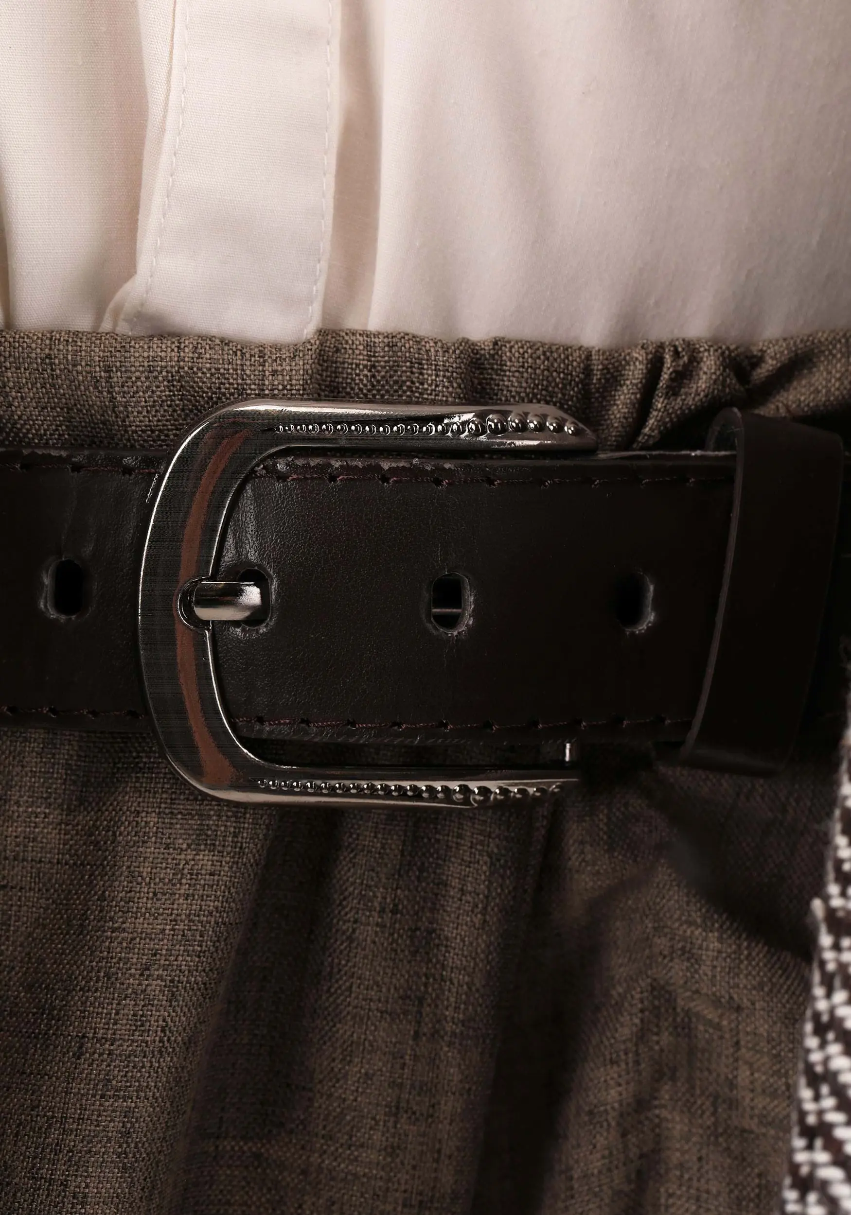 - Faux leather belt has silver-tone metal buckle
