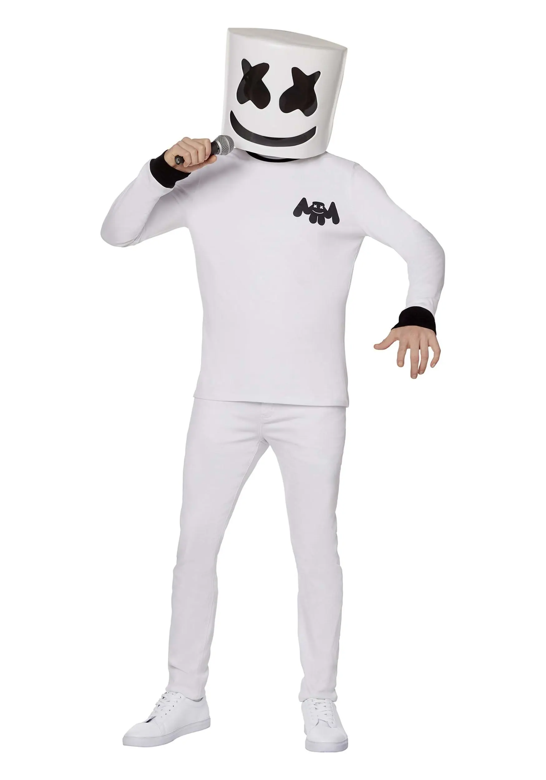 Make the crowds go wild – and keep your anonymity! – in this officially licensed DJ Marshmello Costume! You’ll be a secret sensation when you pull on the signature molded plastic mask with inner foam padding and mesh-covered eye openings (careful when you dance to your tunes, because the mesh may restrict vision!) The matching long-sleeved, rib-knit shirt has a bat printed on the front and “Keep It Mello” on the back. Throw on some white pants and sneakers and you’ll be ready to rock!