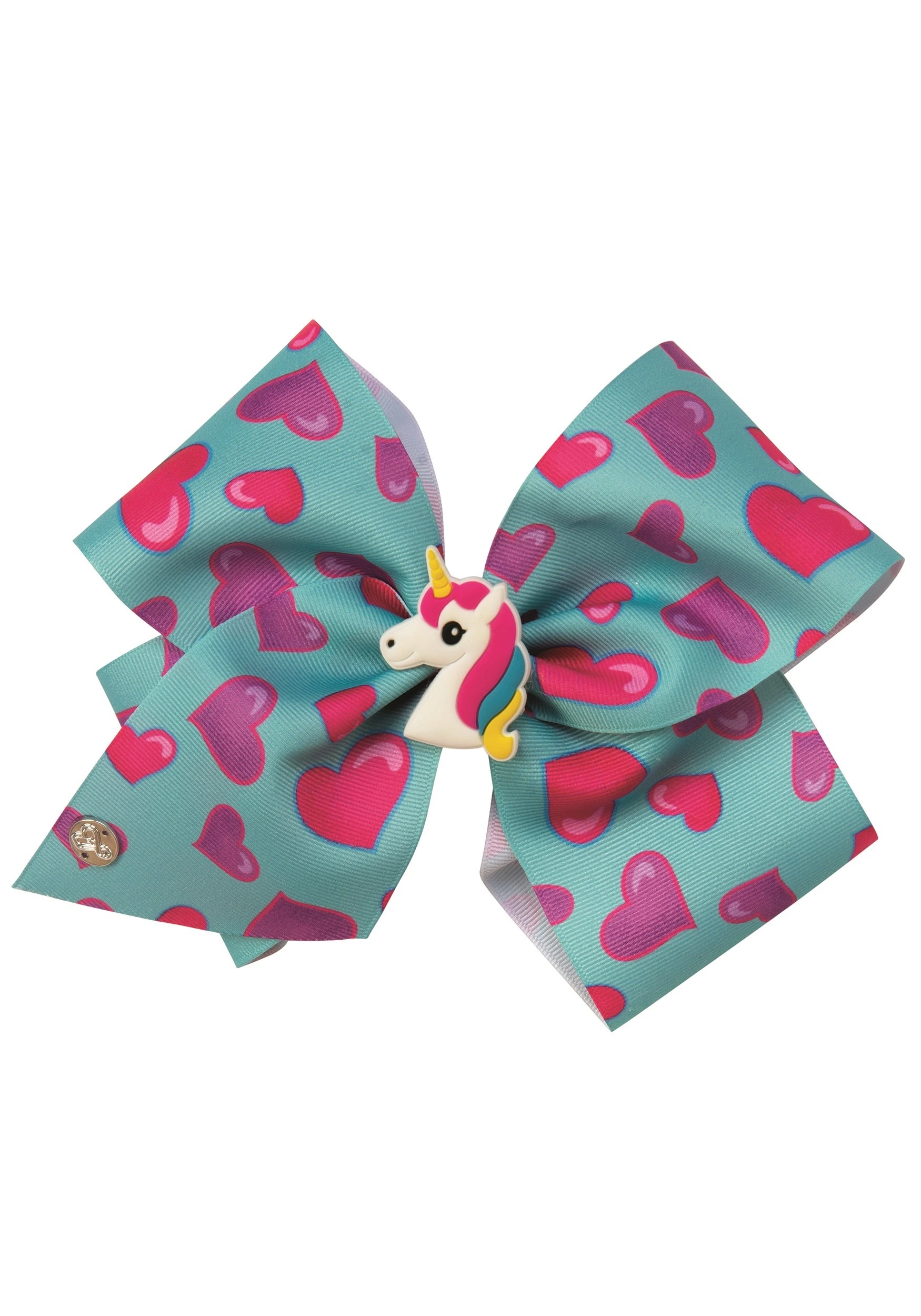 This JoJo Siwa Bow is officially licensed swag for your young Siwanator! It comes in a light blue color and features plenty of hearts on the exterior. The center of the bow has a small unicorn charm on it, complete with rainbow colors! It’s intended for ages 6 and older, so most Siwanators will be able to add this awesome bow to their wardrobe. You can even pair it with one of our JoJo Siwa costumes to transform your child into the pop star! If your child is a Siwanator, then it’s time to outfit her with this awesome bow from JoJo!