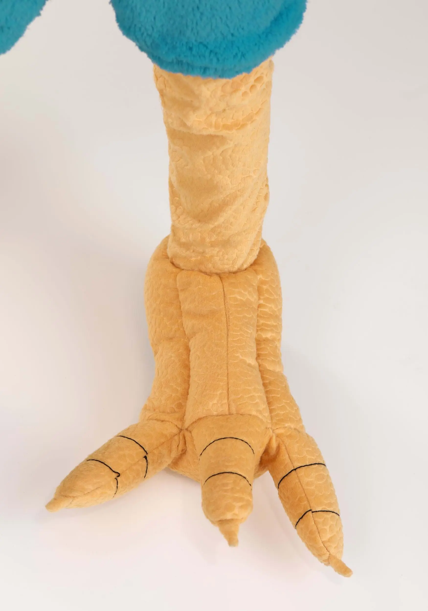 Starting the outfit is a soft jumpsuit with cropped legs, an attached tail, and long-sleeves that are layered to achieve a feather-like appearance. The jumpsuit secures with a centrally located zipper that is then hidden behind a yellow panel shaped to look like Hei Hei’s chest feathers. Your kiddo develops a set of chicken feet by way of pale orange shoe covers with soft sculpted talons. The hood features a foam chicken comb, fiber-filled beak, and Hei Hei’s big eyes.